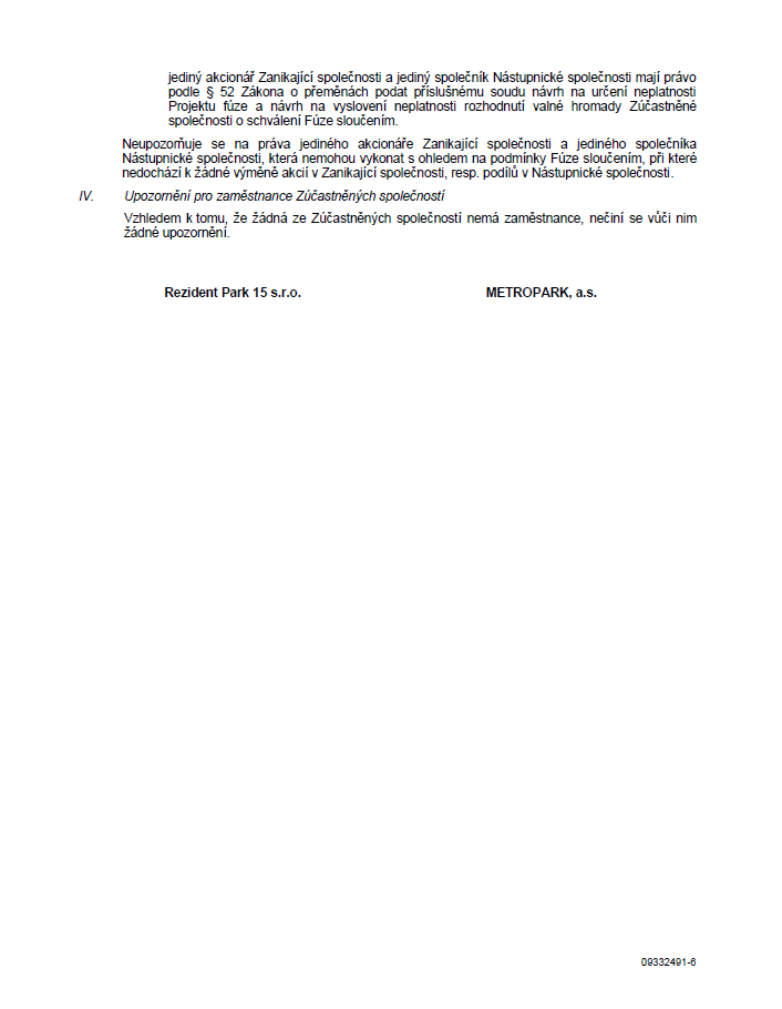 Společnost Rezident Park 15 s.r.o., IČO: 21055556, je ve smyslu § 79 zákona č. 90/2012 Sb., o obchodních společnostech a družstvech (zákon o obchodních korporacích), v platném a účinném znění („zákon o obchodních korporacích“), začleněna do koncernu Skupina Metrostav a podrobena jednotnému řízení ze strany řídící osoby, kterou je společnost Metrostav a.s., IČO: 000 14 915. Tato koncernová deklarace je uveřejněna v souladu s ustanovením § 79 odst. 3 zákona o obchodních korporacích.